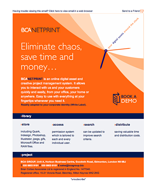Ink and paper. Doesn’t sound very hi-tech does it? But what if you factor in the awesome customisation opportunities of variable data? The ability to talk to your customers with the same personal voice that previously was restricted to radio media. From short run special projects to high volume mailings, we add the famous BCA stamp of quality. And that’s where it all comes together.